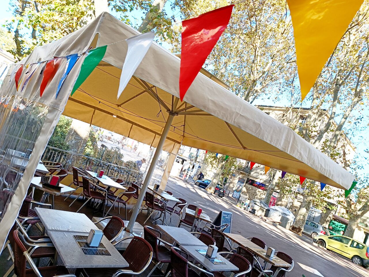 Notre terrasse extérieure vous offrira de quoi vous relaxer en plein air sous le soleil printanier ou à l'ombre des platane les chaudes journées d'été.